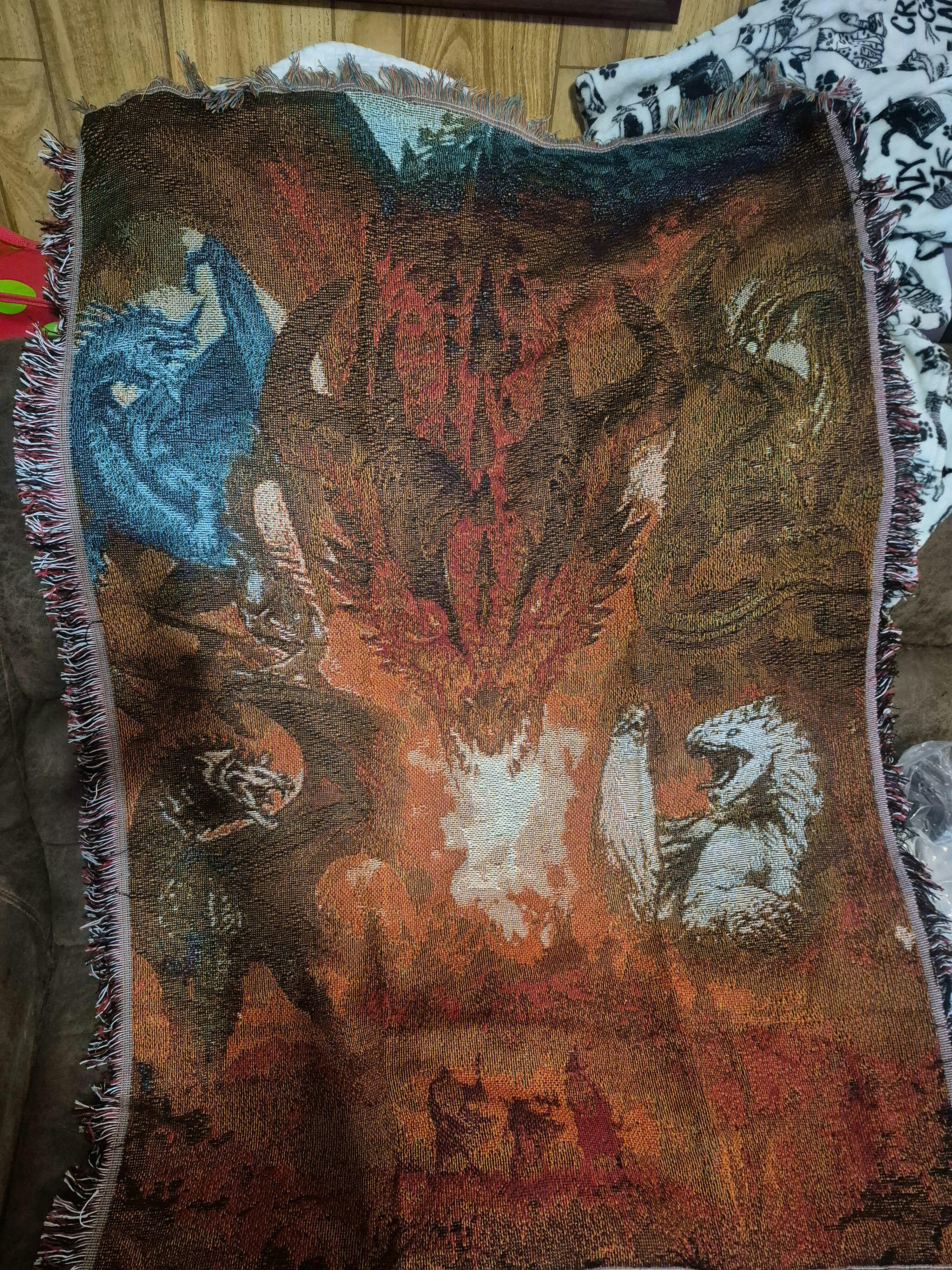 Our blankets are 52" x 37" — perfect for beds, couches, or hanging on your wall.